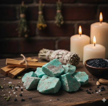 Sostén la piedra cerca del corazón y visualiza una luz verde-azulada expandiéndose suavemente.