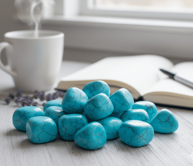 “Activo esta howlita turquesa como símbolo de calma y expresión equilibrada.”