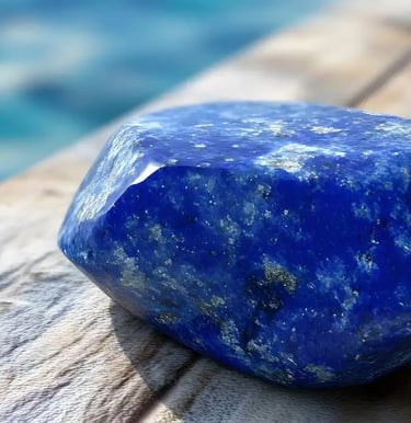 El lapislázuli se vincula con sabiduría interior y expresión honesta. Tradicionalmente asociado con el chakra garganta y el tercer ojo, favorece comunicación clara y pensamiento reflexivo.